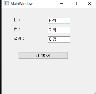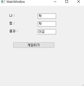 self.le_Mine.returnPressed.connect(self.myclick) : 내가 설정해준 le_Mine에서 엔터를 눌렀을 때 가위바위보 게임이 계속 진행되게 이벤트를 주는 것!