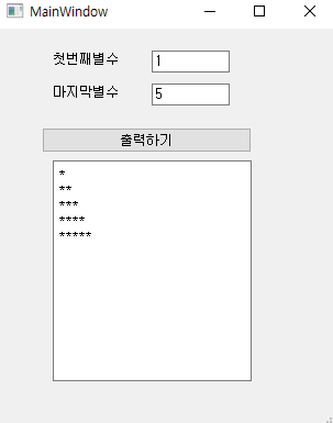 Python 12 - Pyqt ( 텍스트변경, 숫자 증가, 구구단, 홀짝, 로또게임, 가위바위보, 별찍기 본문