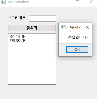 # QMessageBox.about(self, "야구게임","정답입니다~{}".format(self.com))