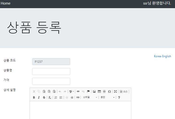상품 등록 페이지로 이동이 된다.