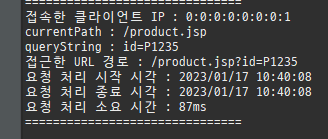 writer.println("접속한 클라이언트 IP : " + request.getRemoteAddr());