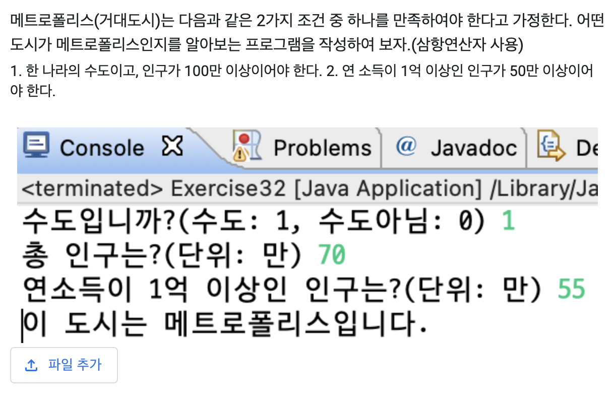System.out.println(a||b ? "메트로폴리스" : "그냥도시" );