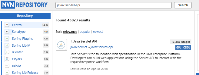 <groupId>javax.servlet</groupId>