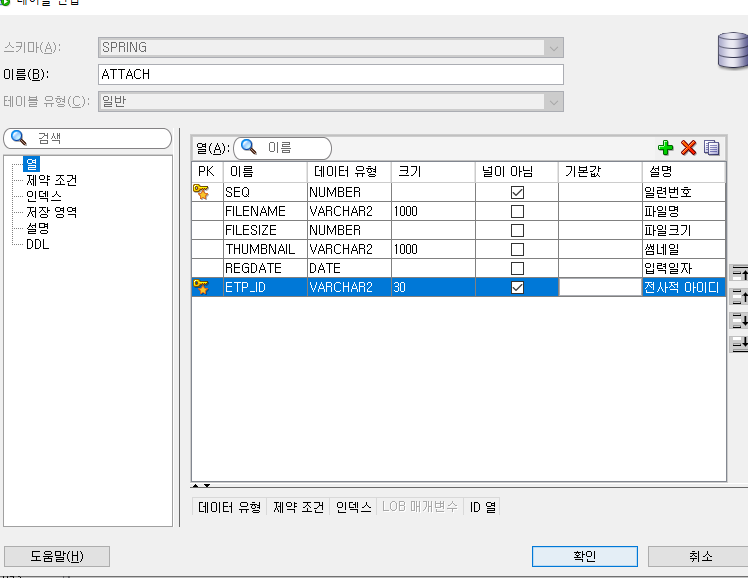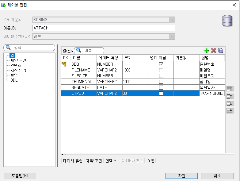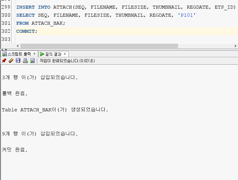 INTO ATTACH(SEQ, FILENAME, FILESIZE, THUMBNAIL, REGDATE, ETP_ID)