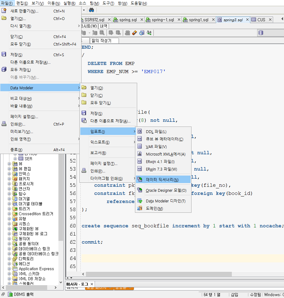 테이블에 MY_SCHEMA. 을 없애주기 위해 ctrl+f로 찾아서 공백으로 바꾼다.