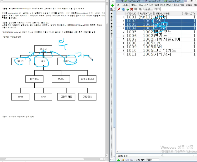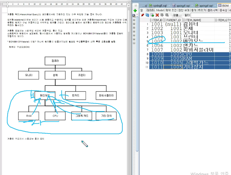 BOM 테이블 만들기 (계층형 쿼리)