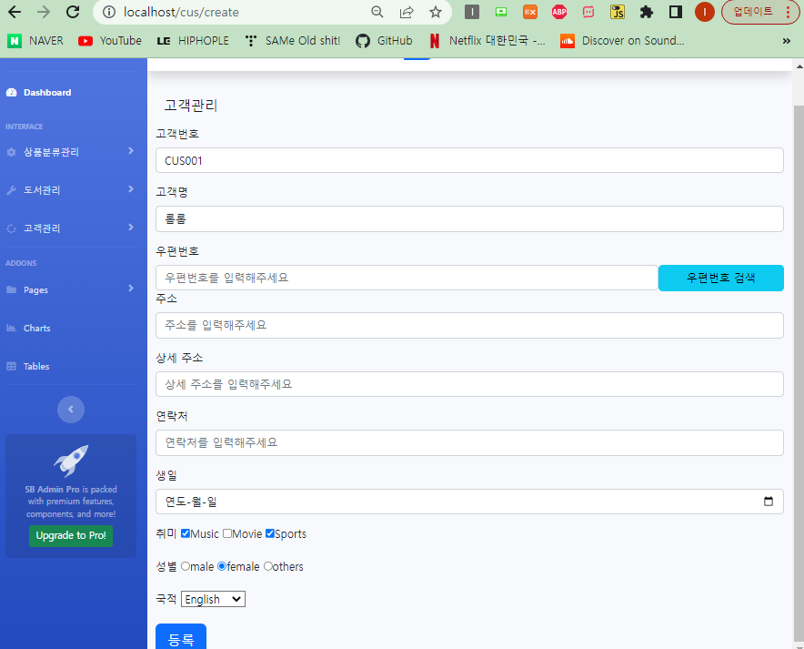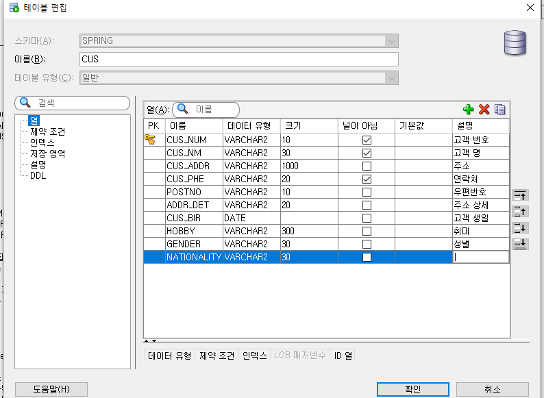 // 1. 고객(CUS) 등록 1행