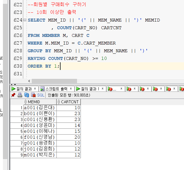 GROUP BY MEM_ID || '(' || MEM_NAME || ')'