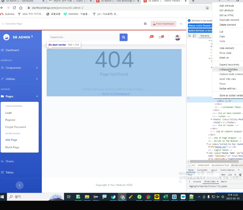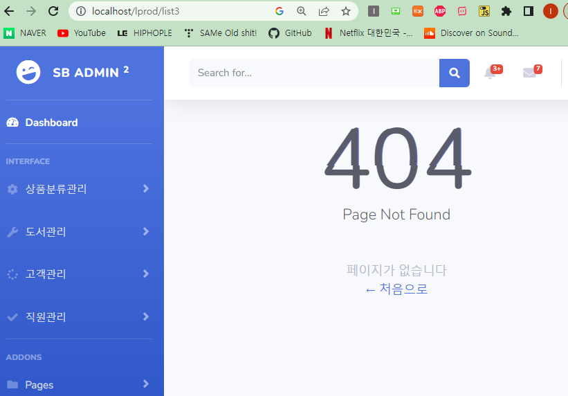 잘못된 주소로 요청하면 에러페이지가 나온다.