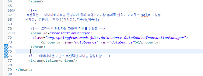 <!-- 트랜잭션 관리자의 자바빈 객체를 정의함 -->