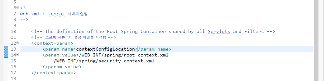 context-param - param-value 안에 security-context 추가
