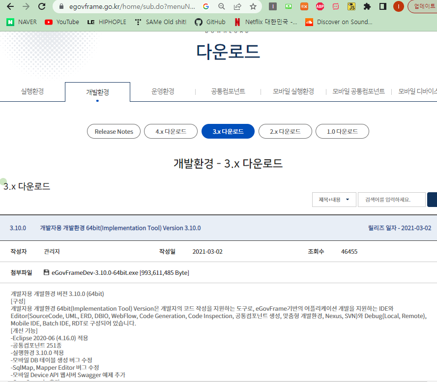 전자정부프레임워크 개발자용 개발환경 64bit(Implementation Tool) Version 3.10.0 다운