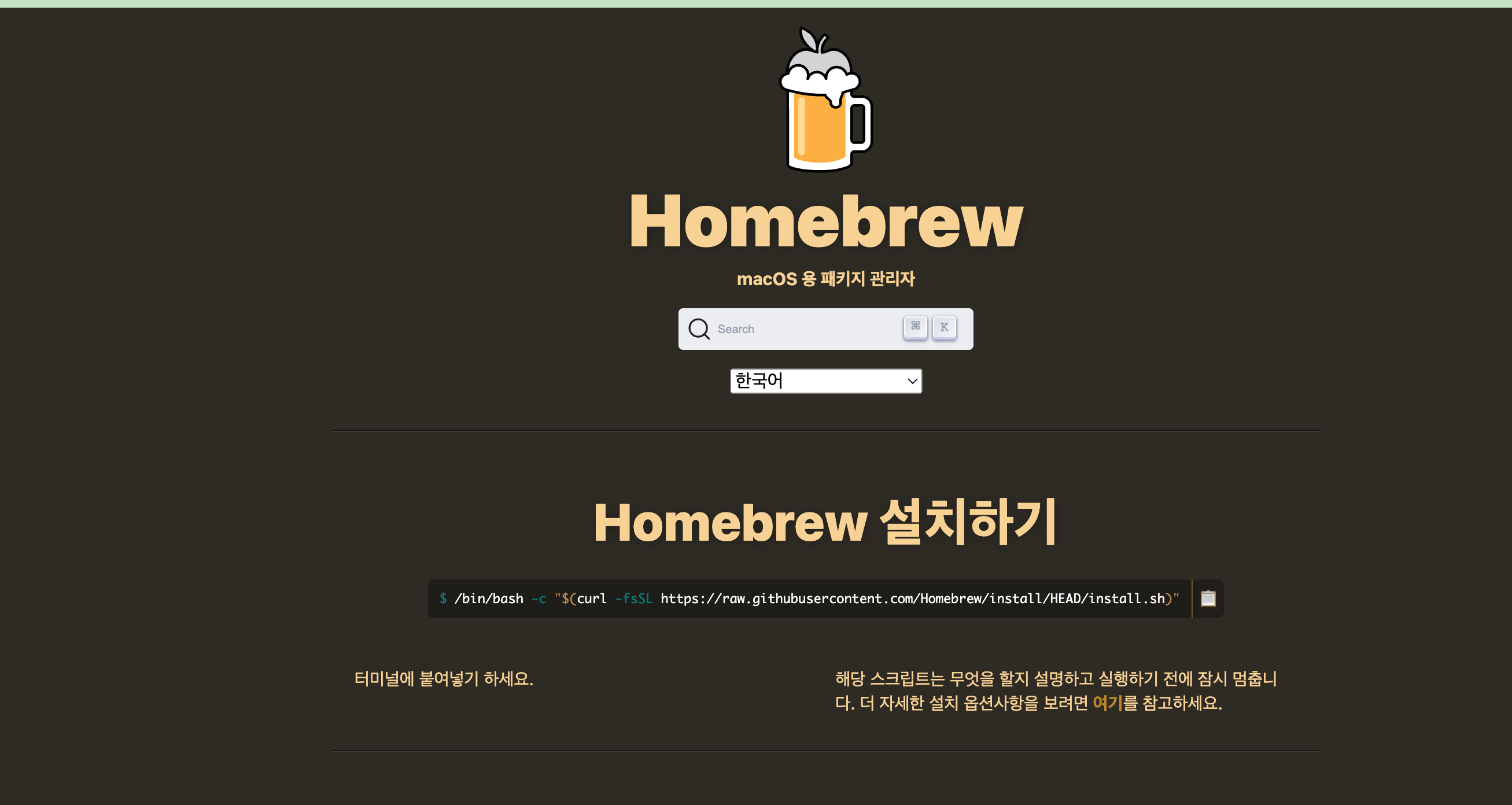 M2칩에 경우 Homebrew 설치 방법을 가지고 왔다