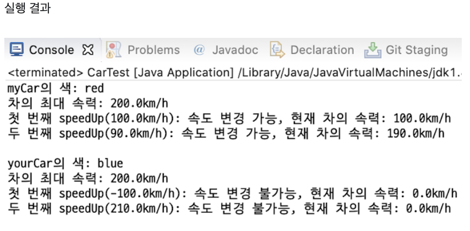 return "Car [speed=" + speed + ", color=" + color + "]";
