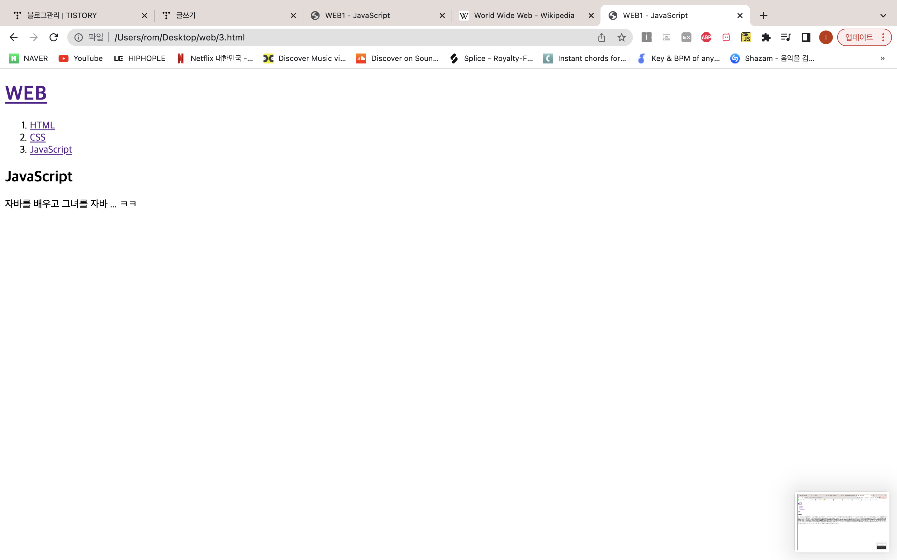 HTML의 공식 사용설명서 페이지를 링크로 걸어보면 ,,