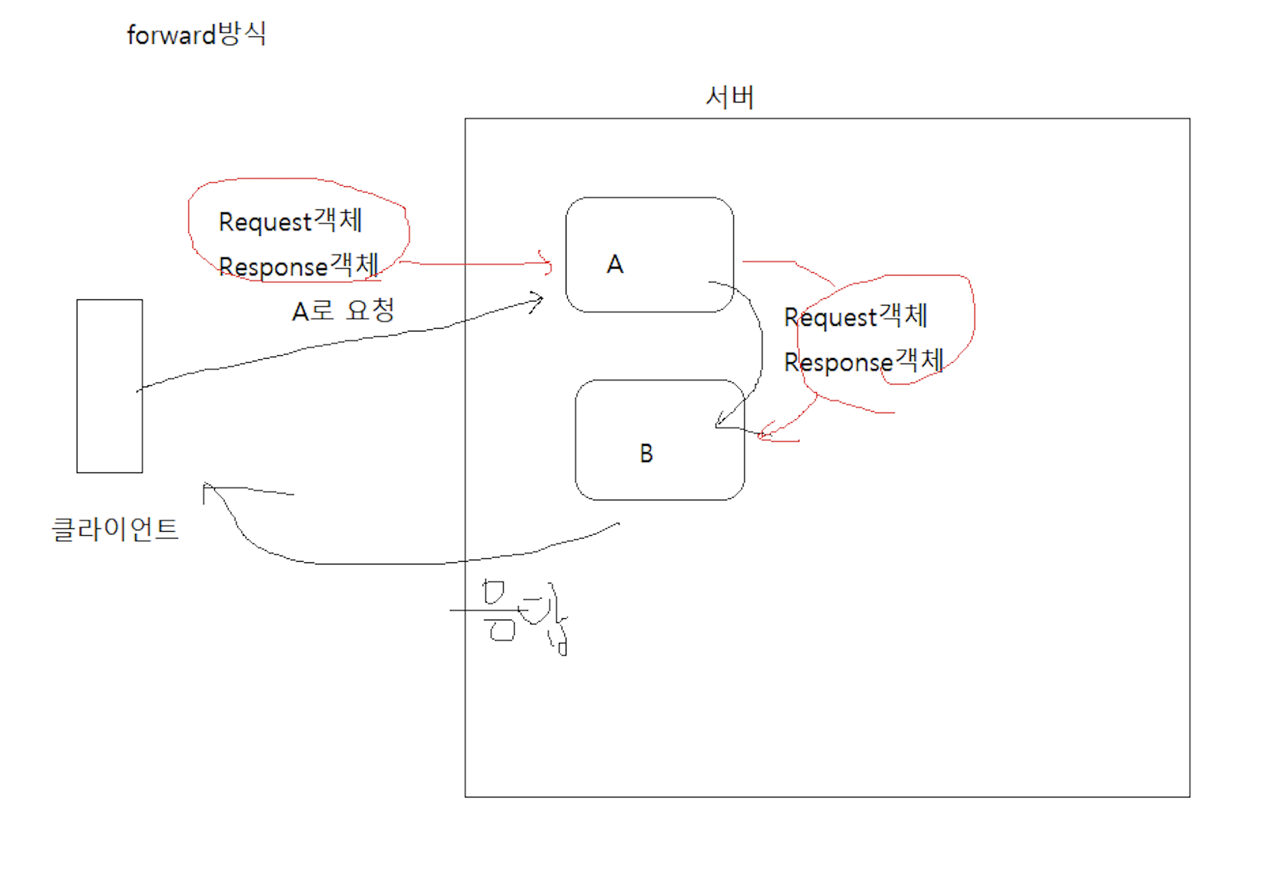 ==> URL주소는 처음 요청할 때의 주소가 변경되지 않으며 redirect보다 성능이 좋다.