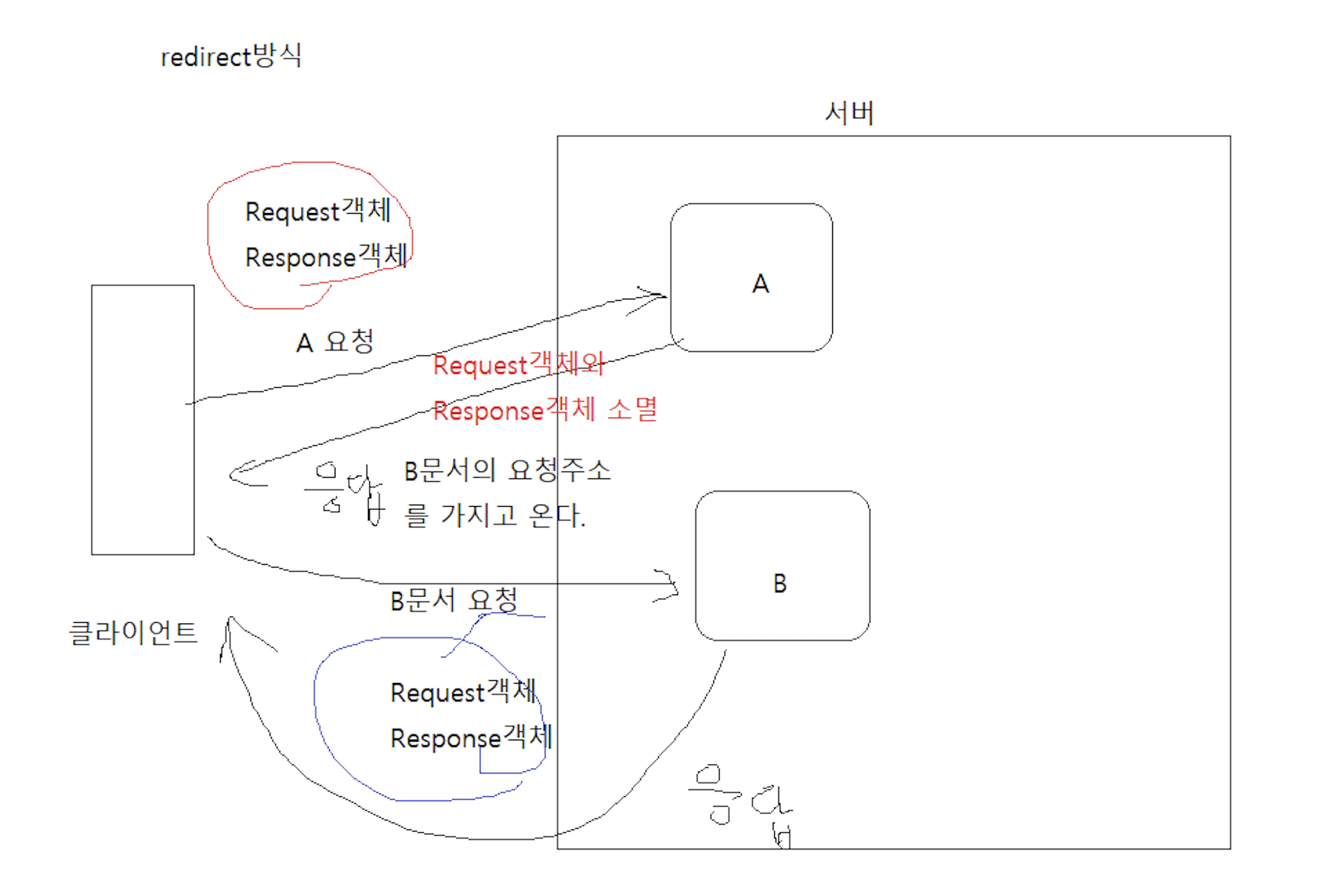 // redirect는 Request객체를 유지하지 못한다.( 브라우저에서 새롭게 요청하기 때문에...)