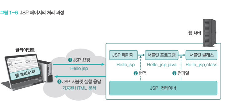 JSP 컨테이너가 자바 코드가 삽입되어 있는 스크립트 태그를 처리하고 나머지는 HTML 코드나 일반 텍스트로 간주
