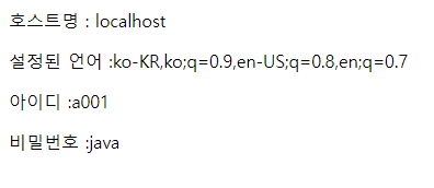 id=a001&basswd=java : 요청(HTTP) 파라미터 => request객체에 들어간다.