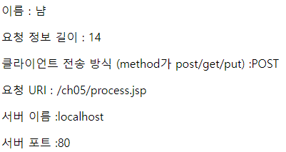 <p>클라이언트 전송 방식 (method가 post/get/put) :<%=request.getMethod() %> </p>